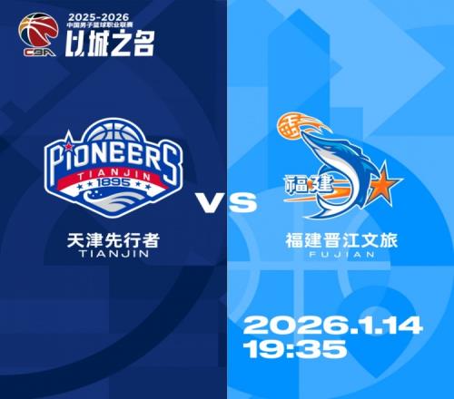 1月14日,2025-2026赛季CBA常规赛第15轮,天津先行者迎战福建晋江文旅,本场次为CBA潜力赛场次,天津5、抖音平台将同步直播本场比赛。先行者携客场胜利回归主场,再度对阵福建晋江文旅。期待球队延续良好状态与比赛气势,依托主场优势,在球迷的热情助威中全力争胜,捍卫津门主场荣耀。